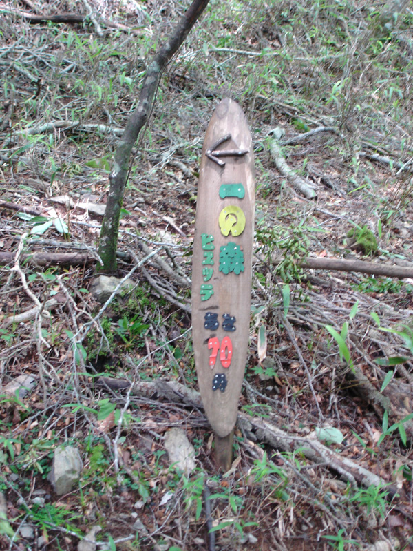 しかしこの山の本当の登山はここからだった。 すでに足はクタクタ。 神社の裏から登山道に入る。 この登山道がまたすごい。 先ほどの登山道よりはマシだが、ここも傾斜が激しい。 足場も悪い。 しかもものすごい暑い……
