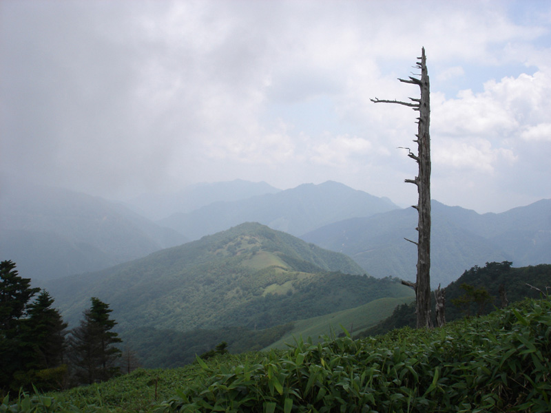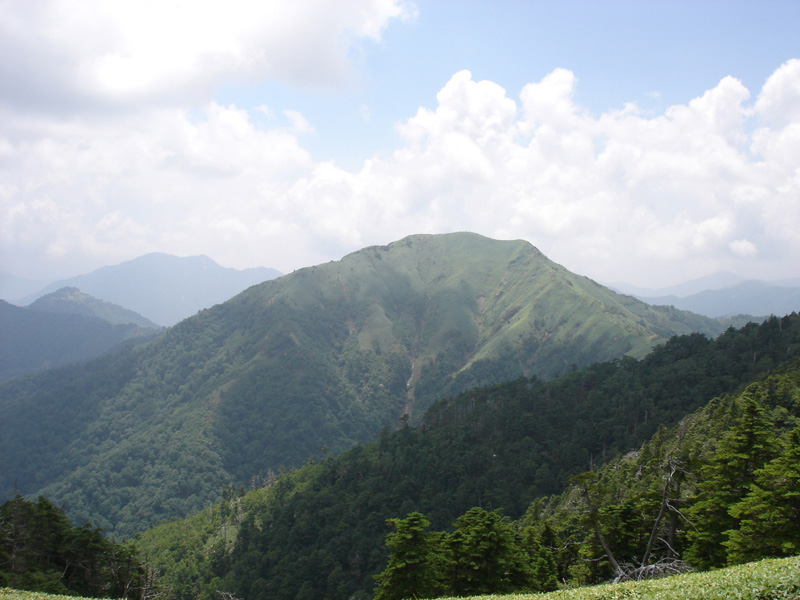 剣山を下り、次郎笈の上りに入ったあたりで、後ろを振り向くと素晴らしい姿の剣山が見られる、と以前来た時、写真家のおじさんに教わったことがある。