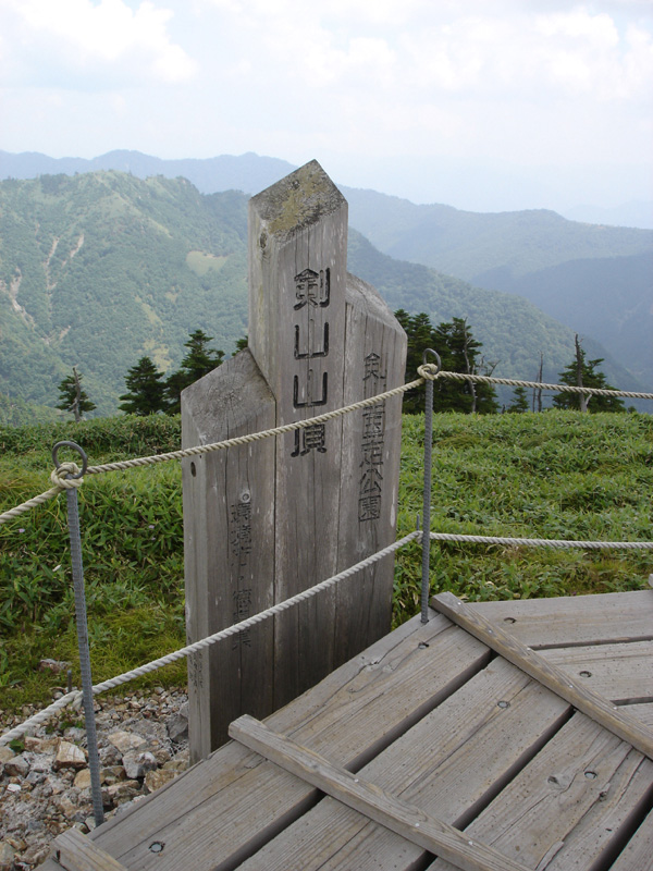 山頂からは剣山と次郎笈がとても綺麗に見える、特に次郎笈は素晴らしい。