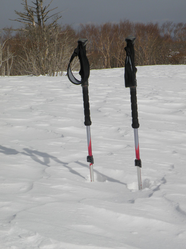 三嶺から白髪避難小屋へ向けて、急な下りが始まった。 下りは間違いなく膝が痛くなるので、今回は秘密兵器を持ってきた。 冬山以外では使わないようにしていたストック。 この時期なのだが持ってきてしまった。 ストックがあれば、下りで足への負担はかなり減らすことができる。 使うのは下り限定で。 登りでは使わないようにしよう。
