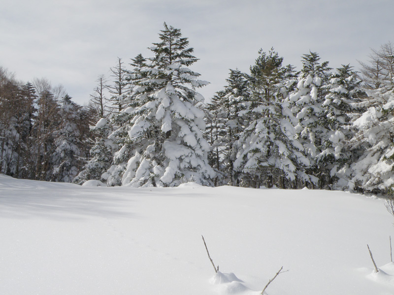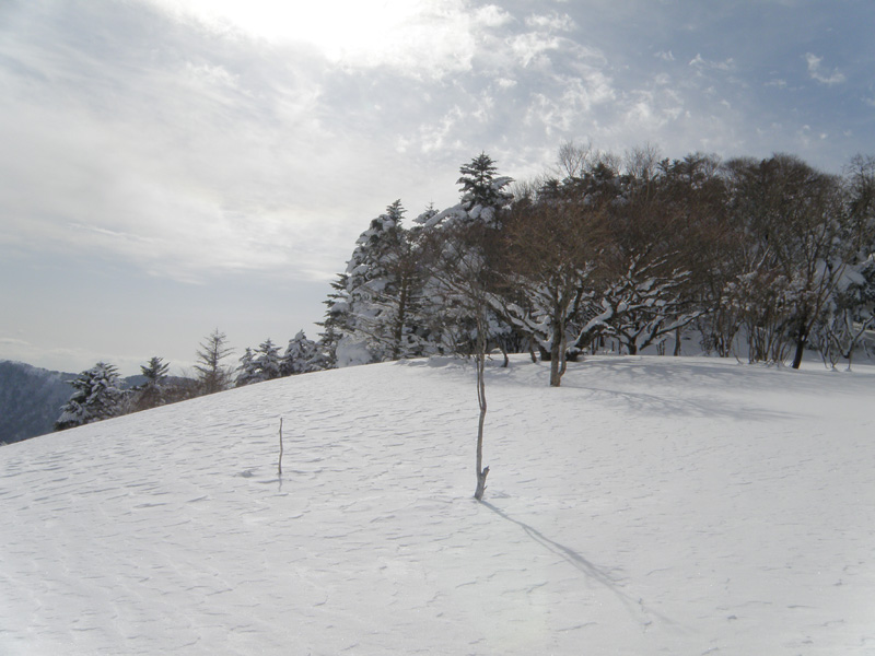 しばらく歩きダケモミの丘まで到着。 ここから登山道が分かれて行く。