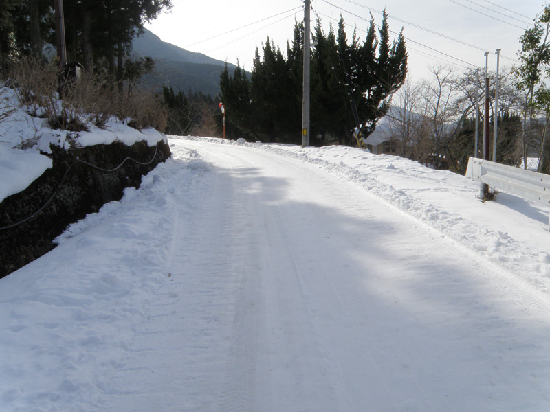 そして地獄の2kmの上り坂。 最初は下り坂でつけた勢い+立ちこぎでなんとか走ったが、息が切れそれ以上こげなくなった。 自転車を押しながら歩き、緩やかな個所を見つけては乗って進む。 車で走った感じと、実際自転車で走った感じは多少違く、自転車でもそんなに押すことなく走行することができた。