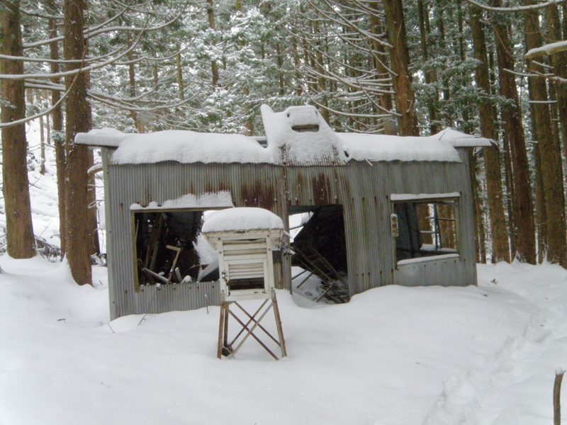 1時間ほど歩き、旧営林小屋まで到着。 前方には13名程のグループが。 しかし、ここで休んで行くので、抜かすのはまた後で……