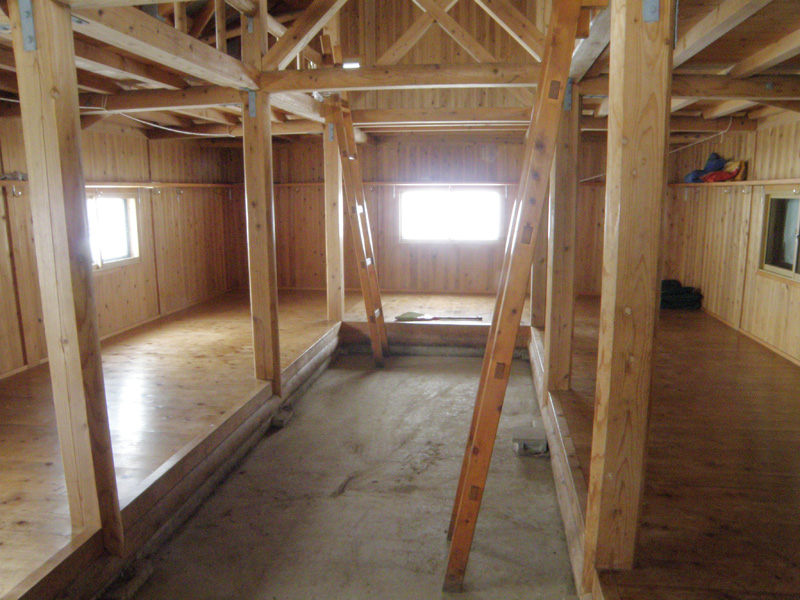 避難小屋まではすぐで、この避難小屋は綺麗でビックリした。 トイレが併設されていて、和式が2つ、男性用が1つ。 和式には木の蓋がしてあり、虫を寄せ付けなかったり、臭いが漏れないようになっていた。 避難小屋の入口の部屋には、薪ストーブがある。 2つ目の部屋は普通の避難小屋のように寝るスペースとロフトが設置されていた。