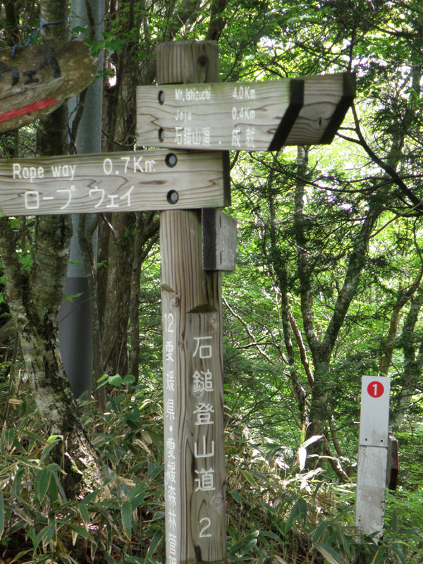 まずは石鎚成就社まで広い道を20分ほど歩く。 すぐに成就社に到着。 元会社の人がお参りするというので、少し待って出発。 このまま八丁まで行こう。