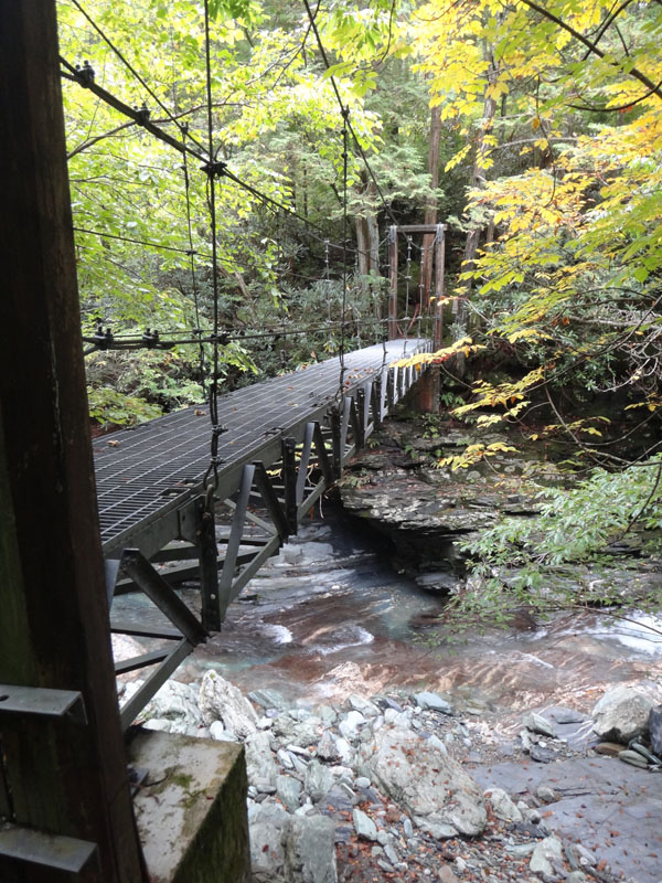 しばらく歩くと、木の橋が出現。 微妙に濡れていて、これが滑る滑る。