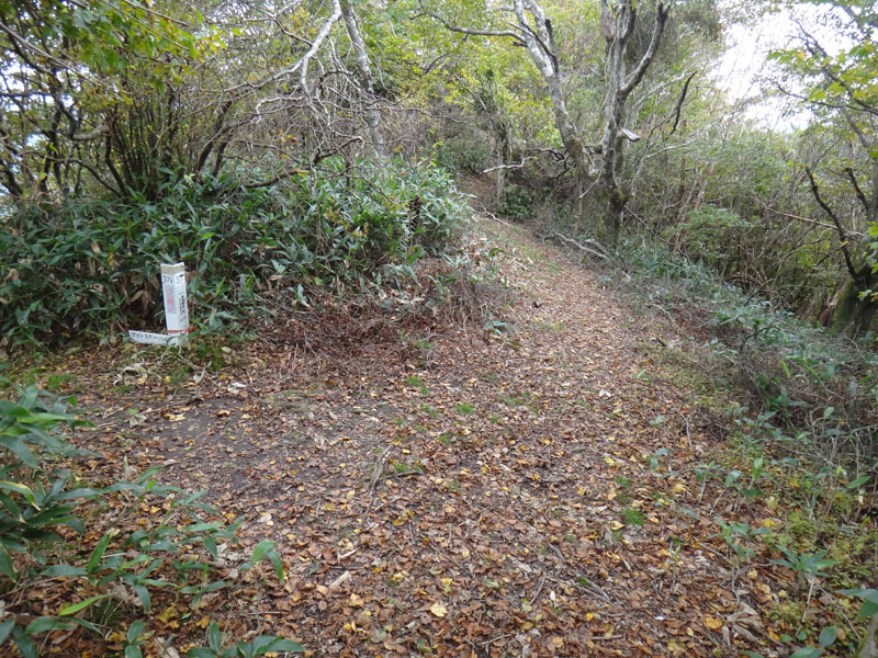 すぐにちち山方面に向かう分岐に到着。 ちち山の山頂を踏みたいので、そちらに歩いていく。 この道がさらに曲者だった。 ちち山に一直線に登って行くので、めちゃめちゃ傾斜がきつい。 瓶ヶ森の脇にある「西黒森」を思い出した。 あそこもこんな傾斜の道だったな。