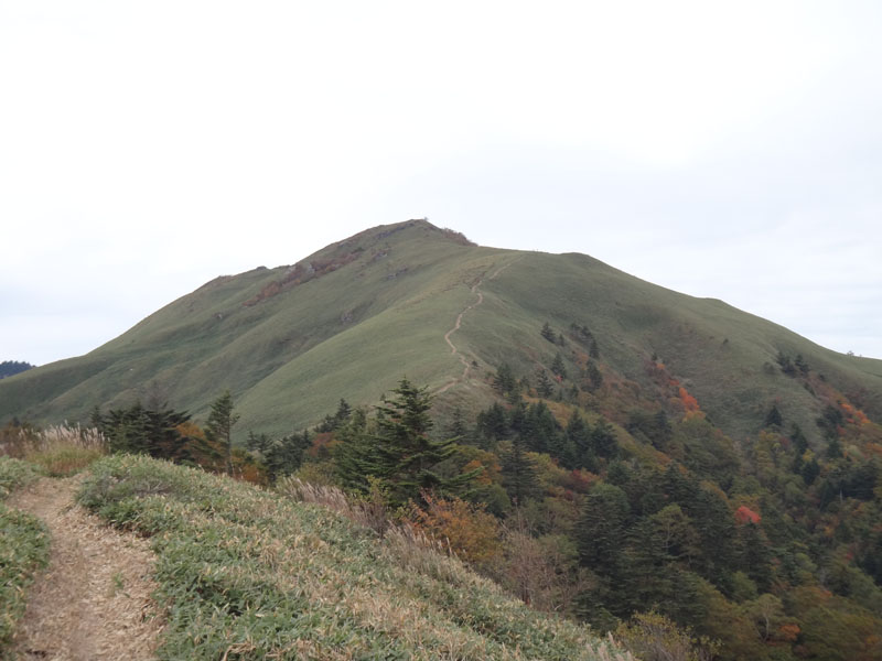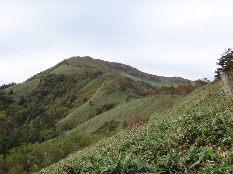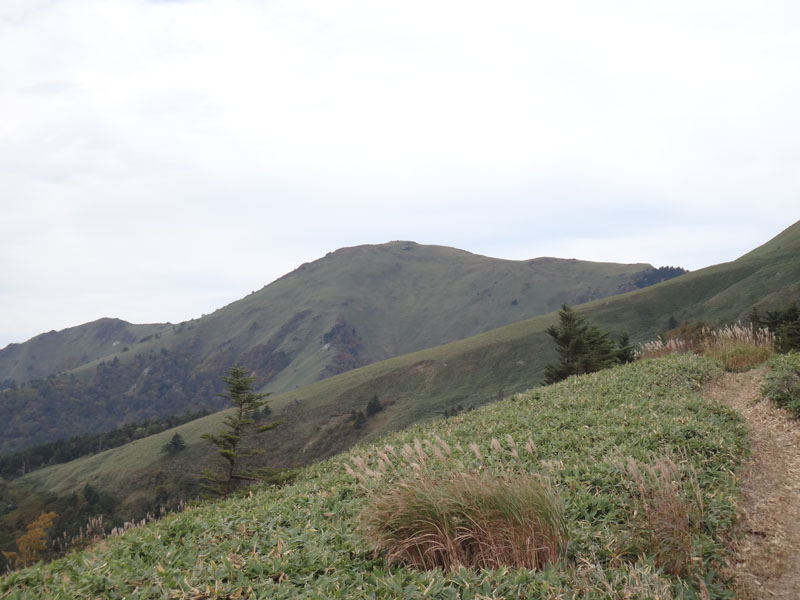 ここからちち山分かれに向かって歩き出す。 ちち山分かれまでは、綺麗な笹原が広がっているのが、この位置からでも見える。 あそこまで、けっこう標高差がありそうだ。