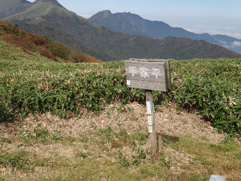 相変わらず笹に阻まれながら歩くが、無事平家平まで到着。 もう疲れたな…… だが、ここからまだ2時間程度の下山が待っている。 だけど、この区間は歩いたことがあるため、少しだけ安心。 気が緩みそうだけど、そこはきちんと引き締めて……