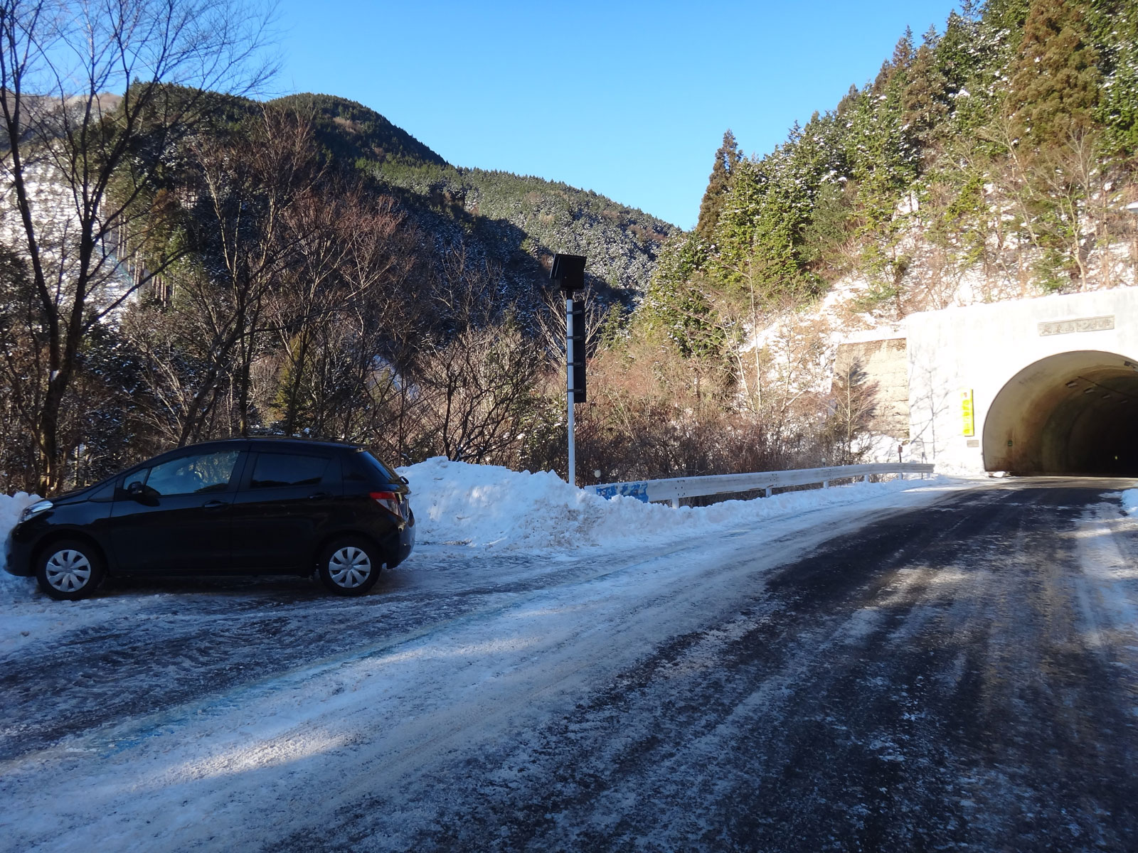 今日は雪があまりないのかな? 路面の雪は、年末よりはるかに少なくなっていた。 大永山トンネルを抜けた先に駐車。