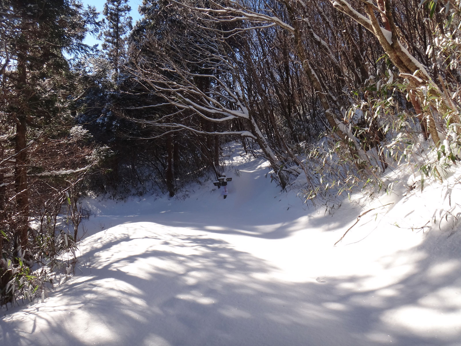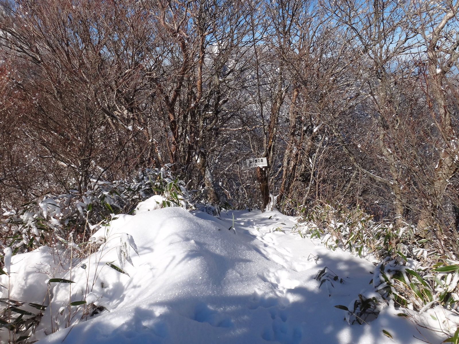 さて、ここから先は冬場は歩いたことがないので、未知の領域だ。 ちち山分れ直前に、笹原の登りがあるのだけど、そこは夏場に登った時はけっこう辛かった記憶がある。