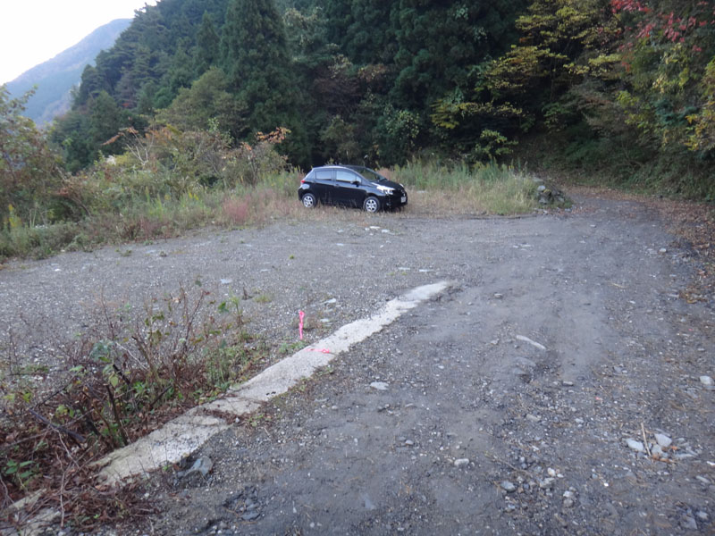 一度登山口まで行ったが、車を止める場所が微妙だったので、少し戻って広くなっている場所に駐車。 登山の準備をして出発。