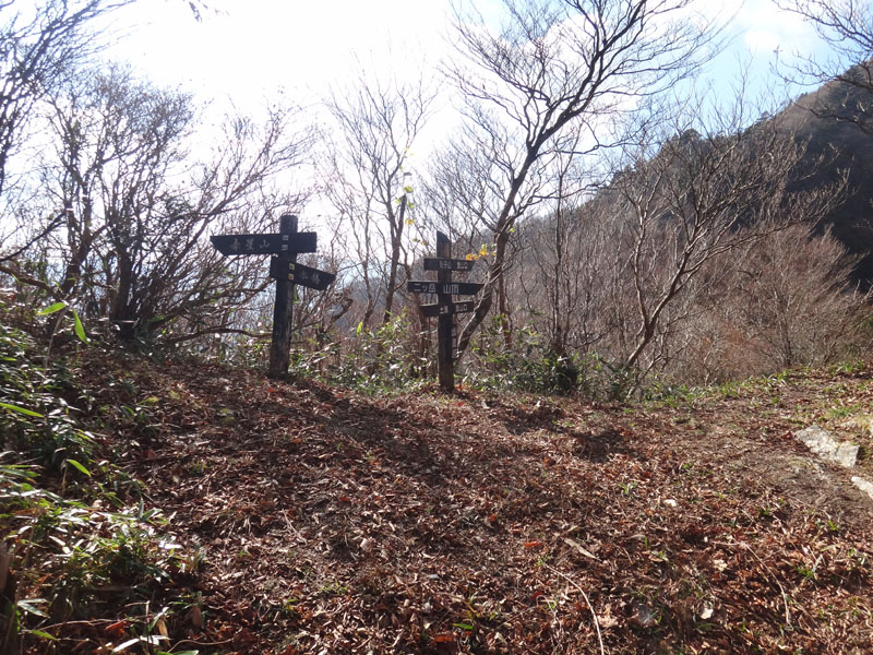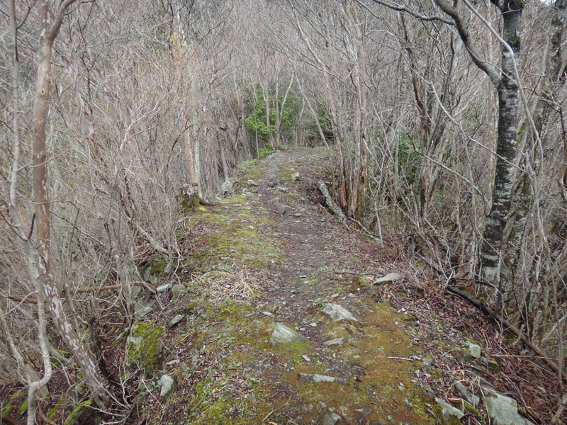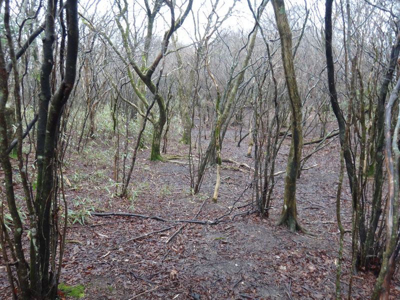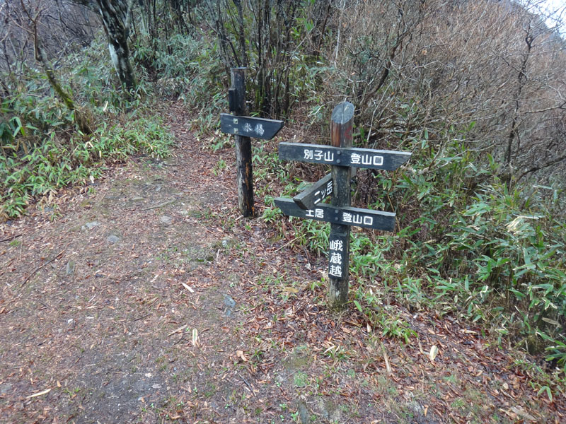 しばらく歩き峨蔵越まで到着。 誰かいるかな、と思ったけど誰もおらず…… ここは北斜面から風が吹いてきてかなり寒かったので、別子方面にちょっと歩いてそこで休憩。 さて、これから一度も歩いたことのない、赤星山方面に向かって歩いていく。