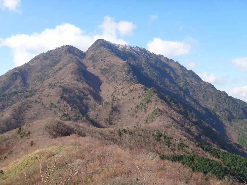 二ツ岳の北斜面には霧氷のような白いものが見える。