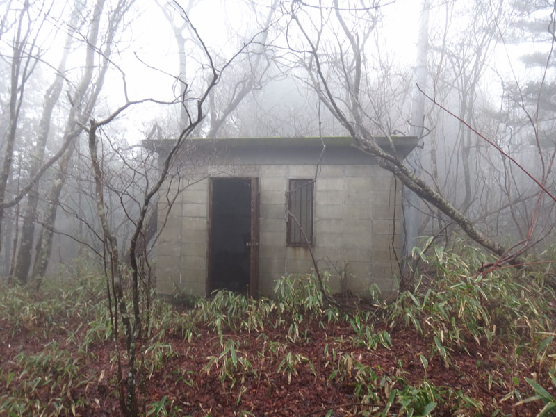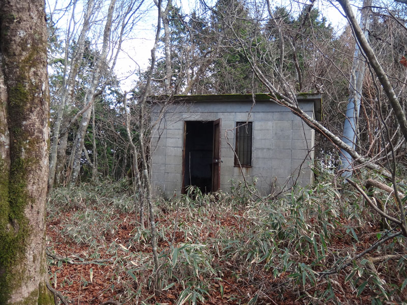 小箱越えを越えて少し登って行くと、コンクリートの建物がある。 ドアが開きっぱなしで風に吹かれて開いたり閉まったりしているのが不気味だった……