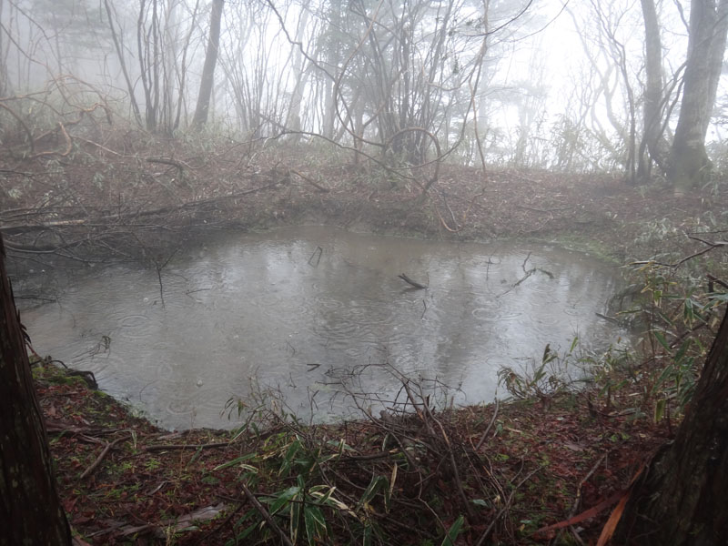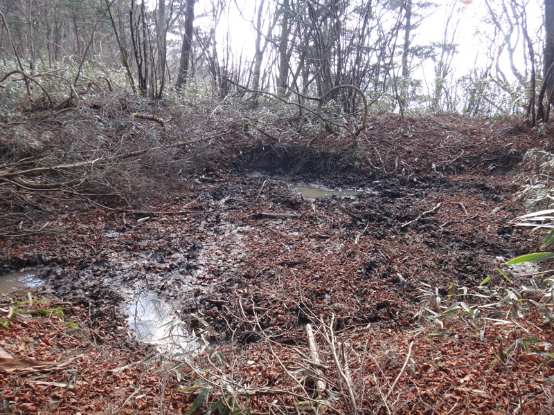 そのすぐ先には、ヌタ場が。 動物の足跡があった。