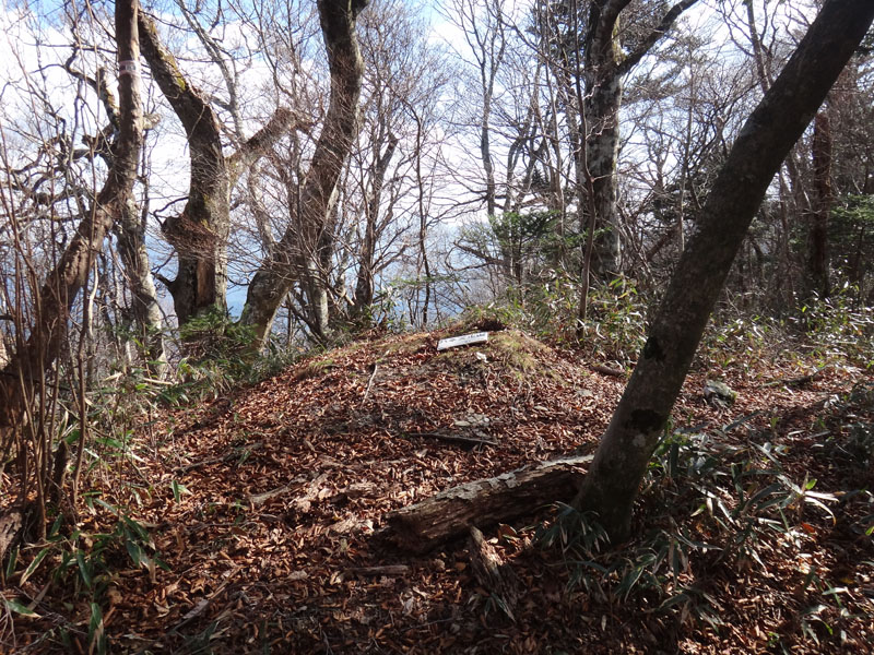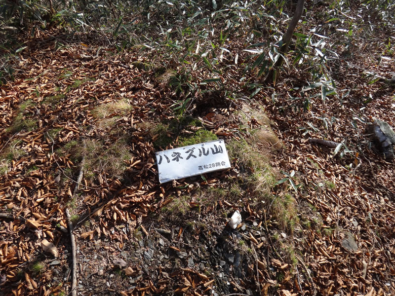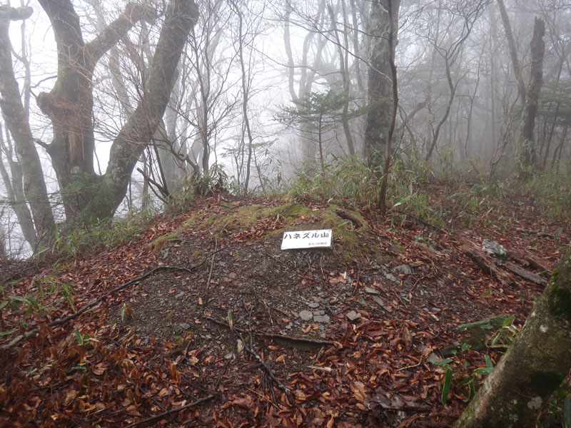 そして、ハネズル山山頂に到着。 山頂は全く景色が見えず、ただ山頂の看板が置かれているだけだった。