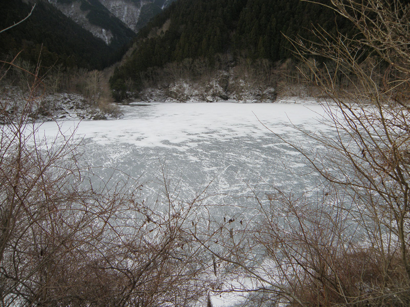 最近暖かかったので、雪は少ないかなぁ、と思いながら走っていたのだけど、かずら橋手前のトンネルを越えてから、路肩に結構な雪が出現。 こっちはまだまだ冬だったのか!