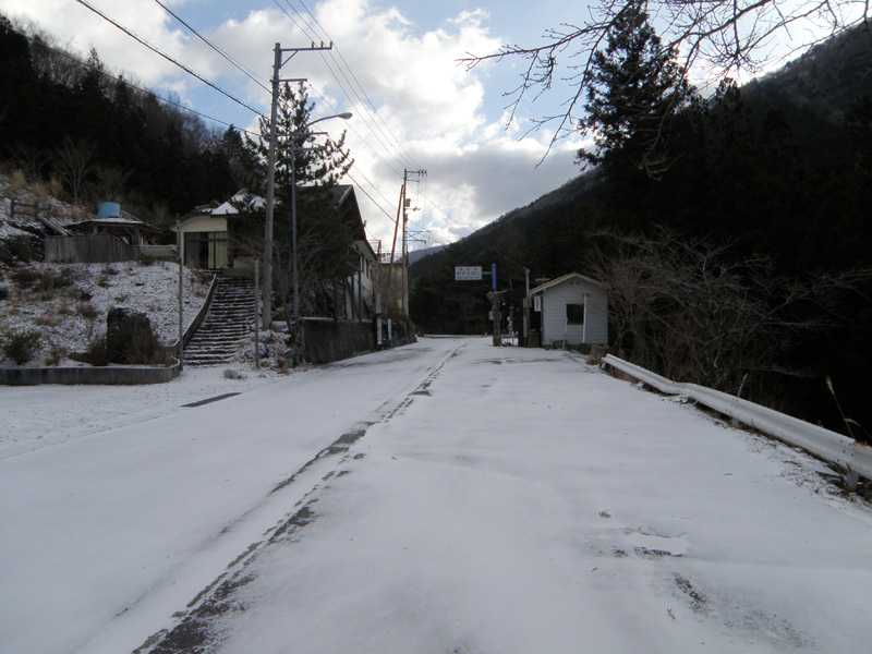 かずら橋の横を通過して細い道へ。 京上トンネル越えた先あたりから、路面にも雪が出現するようになった。 積もってるのは1cmくらいだけど、この付近から雪が積もってるの、かなり久々な気がするな。