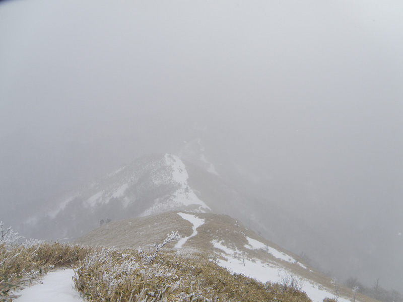 しばらく歩くと剣山~三嶺縦走ルートの稜線に合流。 当然人が歩いた気配はない。