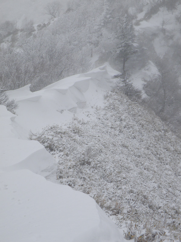 こちらの上りはけっこう積雪があり楽しめた。 小さな雪庇も出現。