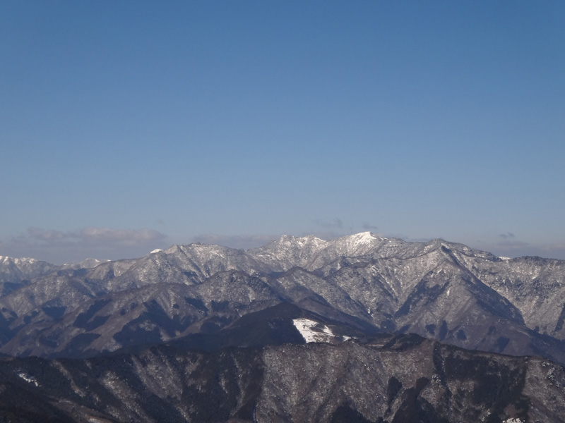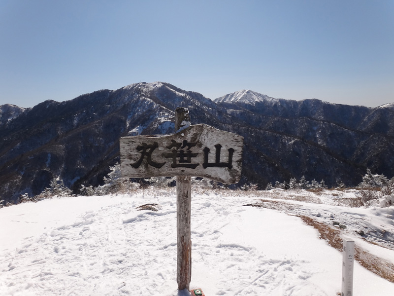 そして丸笹山山頂に到着。 赤帽子山からとは角度が変わったので、次郎笈が見える。