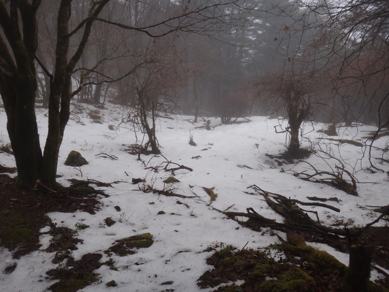 まずはスキー場のゲレンデを歩いて登っていく。 何年か前に閉鎖されたこのスキー場。 雪は全く積もっていない。 ゲレンデも荒れ放題。