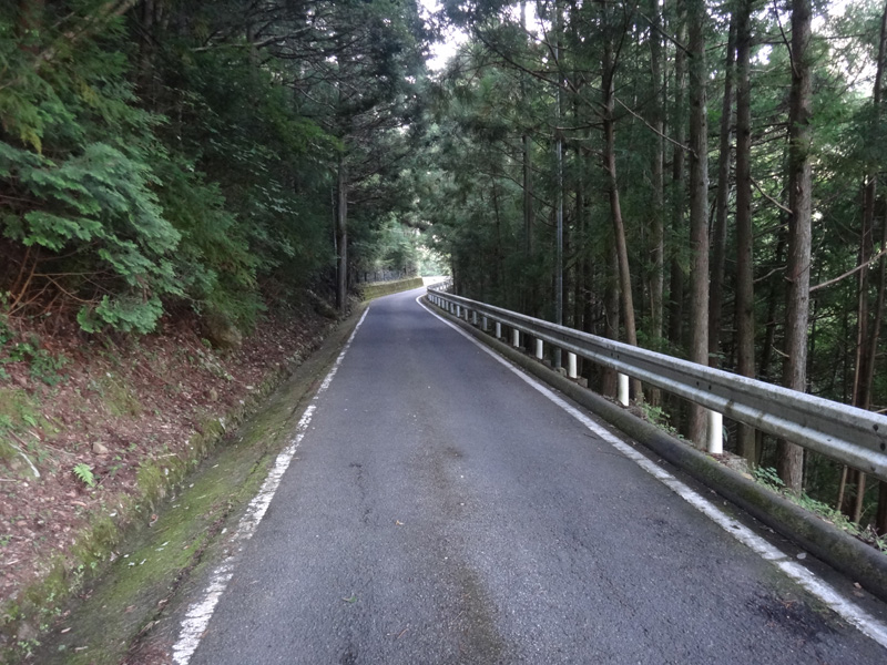 車が一台も通らない道を、ひたすら歩いていく。 思っていたより長いな… 車道だけど標高はどんどんと上がっていく。 さっきまで走っていた県道が遥か彼方に、そして見えなくなる。