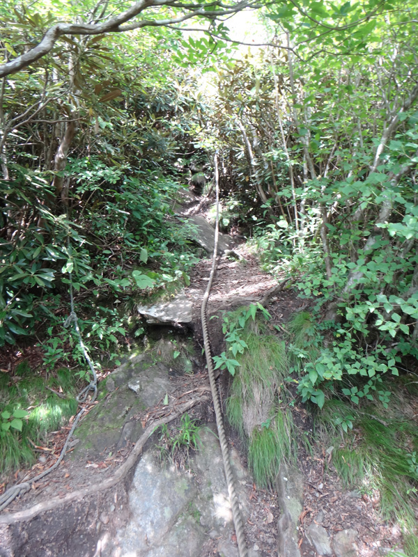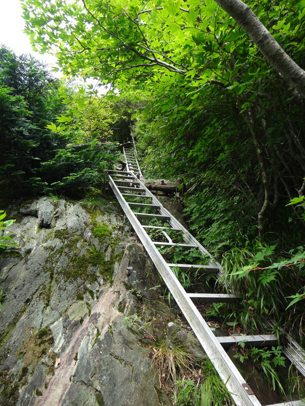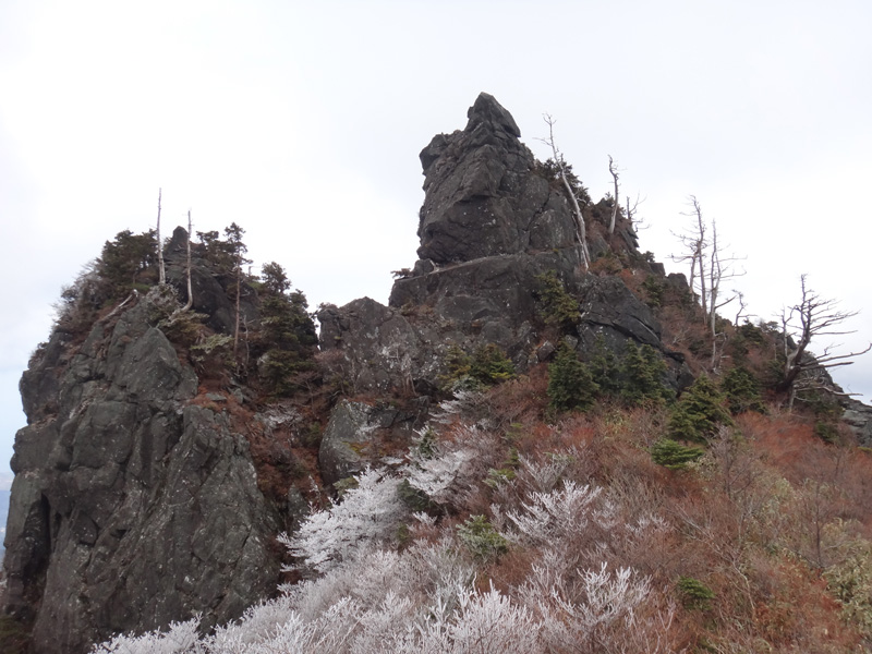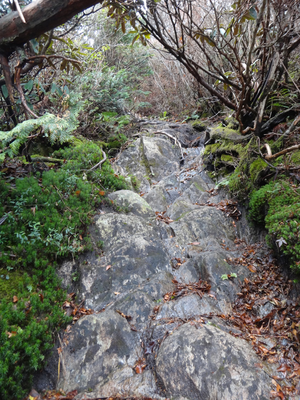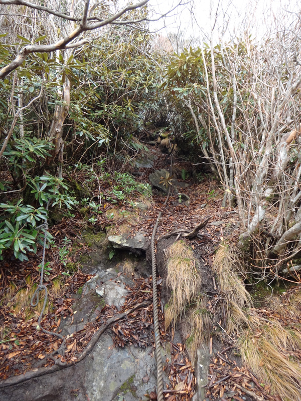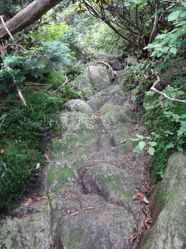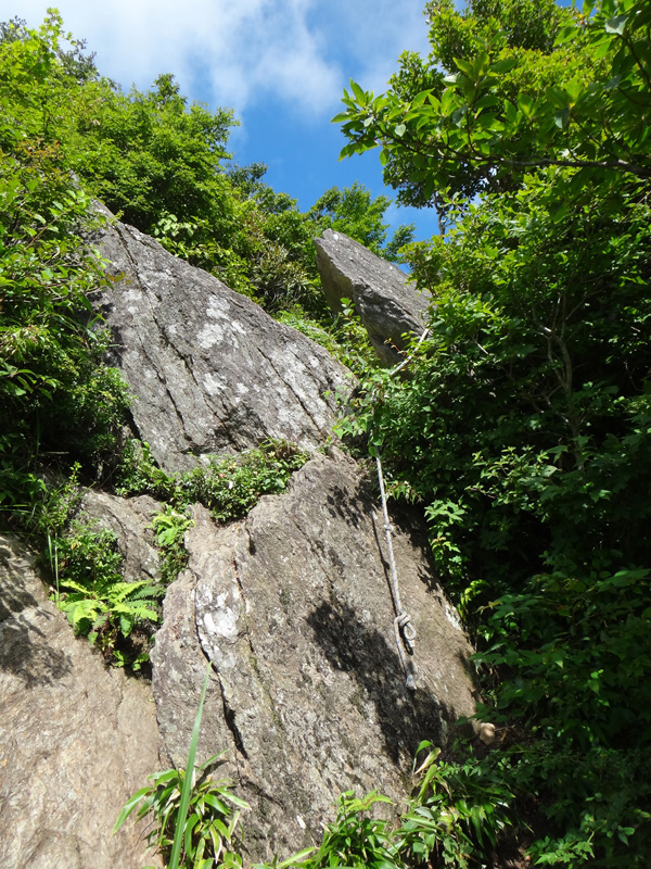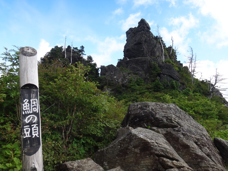 峨蔵越から先は急な傾斜だったり、岩場だったりの道に変わる。 まずは鯛の頭まで。 ここまでも結構苦労しながら歩いて行く。 途中にロープがあったり、鉄のはしごがあったり。