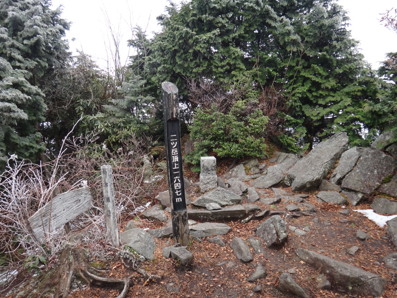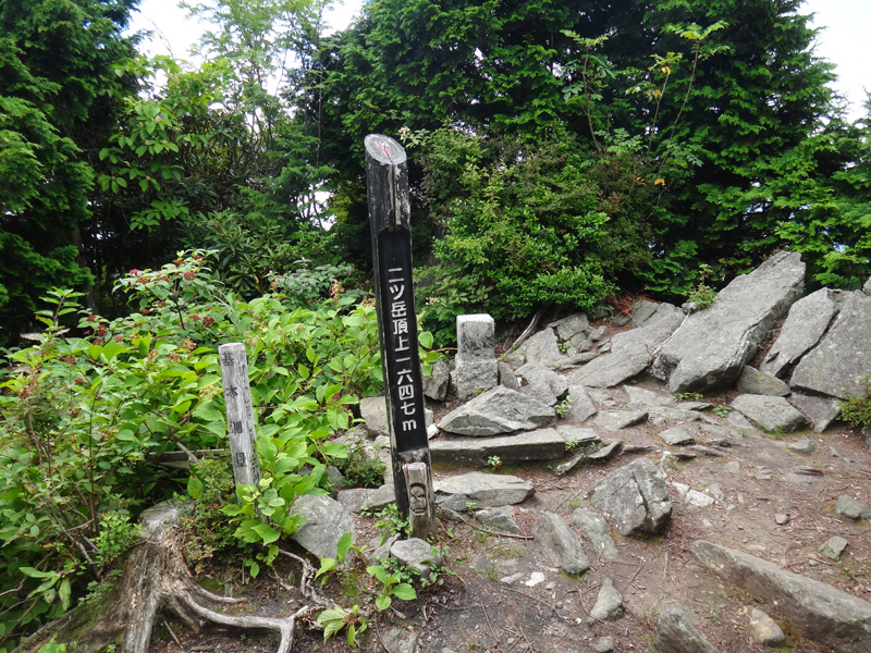 けっこう苦しい登りを登り切り、二ツ岳山頂に到着。