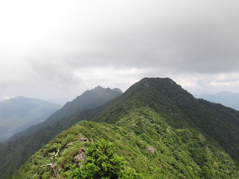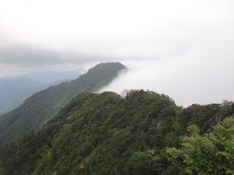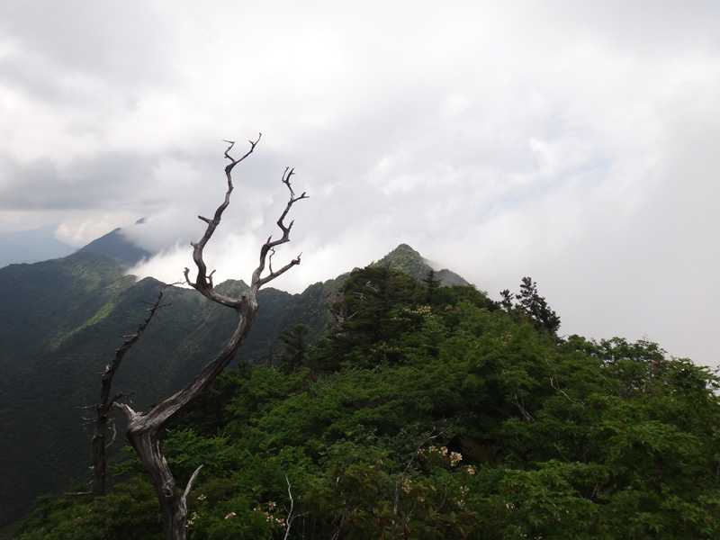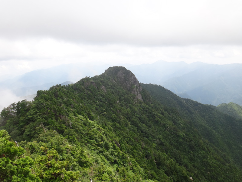 「命がけ」の地帯を通過し、二ツ岳山頂に到着。 山頂は狭く景色もあまり見えないので、鯛の頭まで降りてから休憩しようかな。