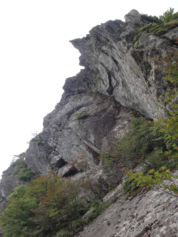 ロープを使ったり、ハシゴを使ったりして、「鯛の頭」まで到着。 ここにザックがデポしてあり、山頂方面に人がいる気配が。