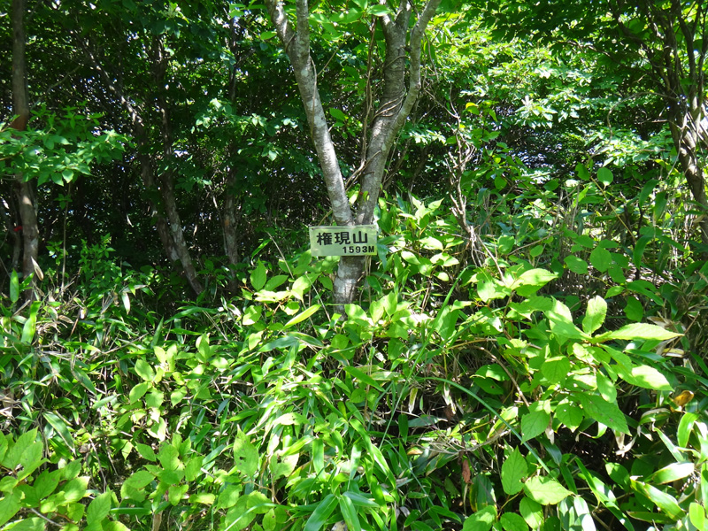 そんな事をしながら、黒岳に到着。 けっこう疲れたなぁ…… あとは権現山だけなのだけど、黒岳直後に危険地帯があり、その先には「笹こぎ」となっている。 目視の距離もけっこうあるし、コースタイムも1時間20分となっている。