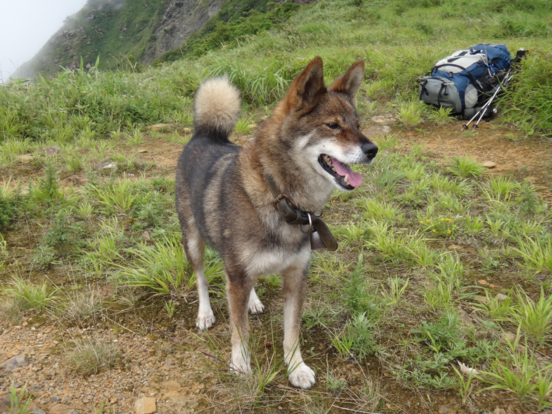 おにぎりとパンで栄養補給していたら、床鍋から犬を連れた男性が登ってきた。 時刻は既に15時。 こんな時間に? と思って、話を聞いたら、今夜はここでテントを張るみたい。