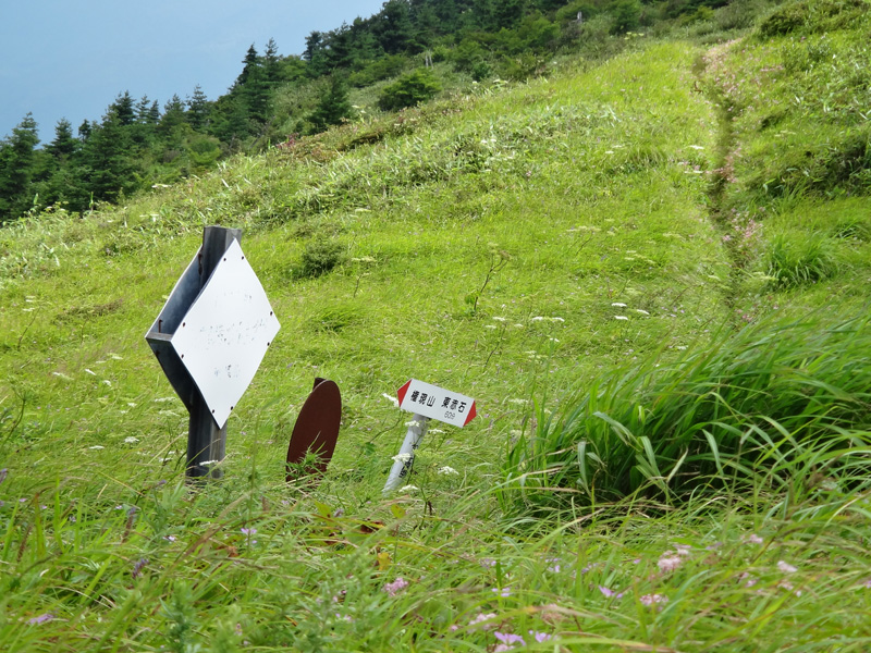 しばらく歩き、峨蔵越に到着。 ここで少し休憩。 さて、山頂までは岩場などを登るだけ。 ここから先が以外に時間がかかり、前回は1時間ほどかかっていたはず。