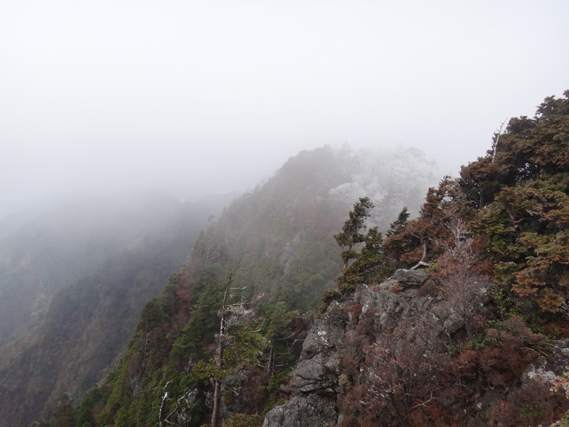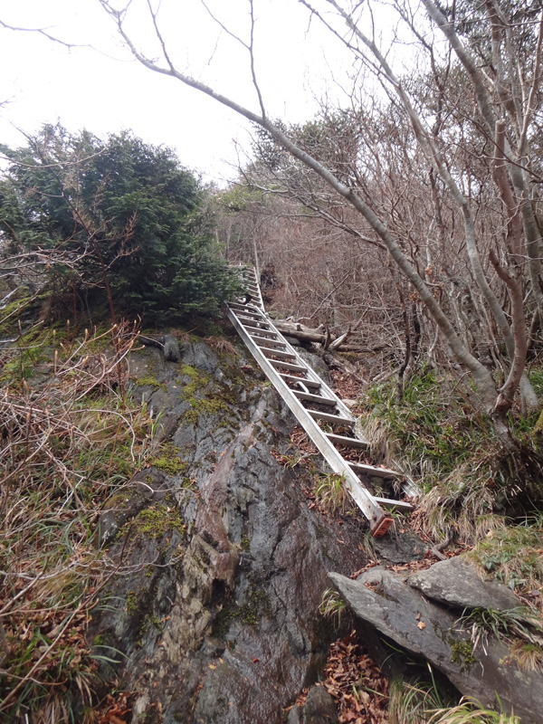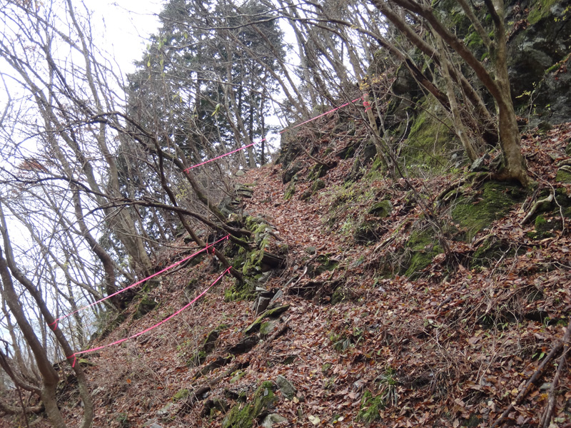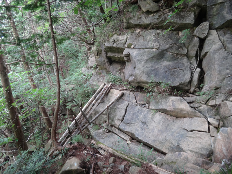 さて、ここまでもけっこう辛い道だったけど、ここからがこの縦走路の真骨頂。 あまり歩かれてないうえに、崩落箇所が2ヶ所もあるらしい。