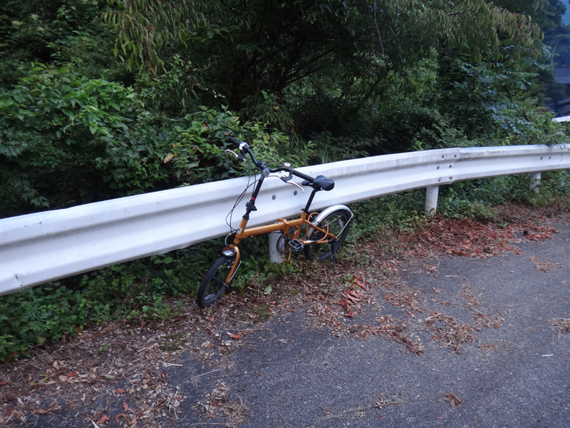 登山口に置いておいた自転車に乗って、車を目指す。 車までは下り坂が3kmちょっと。 6分程度で到着。 こんなに近いとは!
