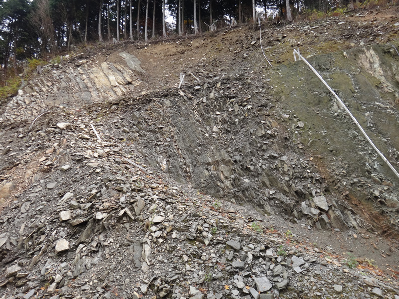 工事の人たちは帰っており、崩落斜面が綺麗にされていた。