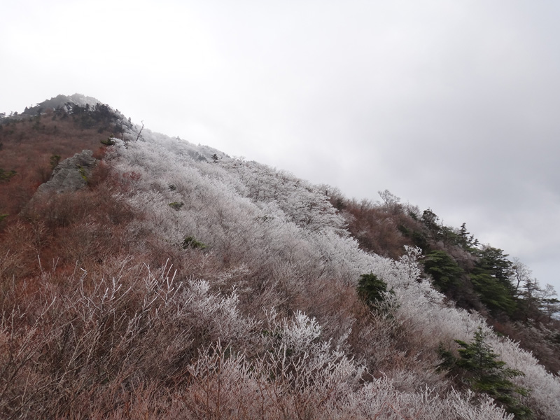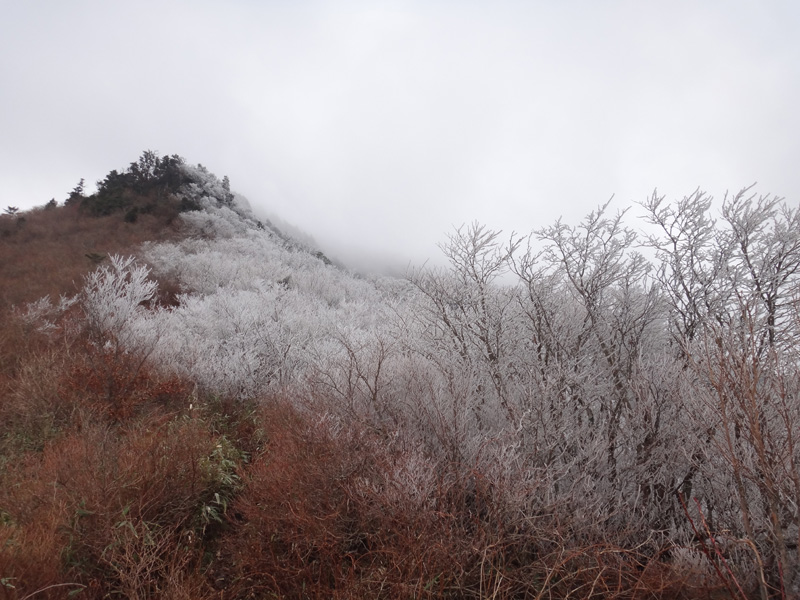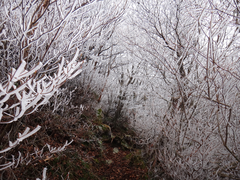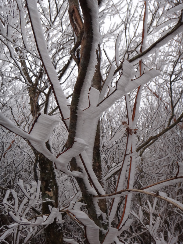 途中で樹氷地帯を通過。 北斜面だけ樹氷なので、南北ではかなり温度が違うんだな。