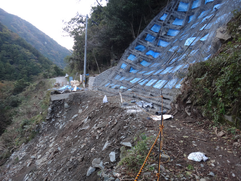 工事看板では年内には工事終了するみたいな日付で書いてあったけど、崩落した道路も含めてその日程じゃないよね、どう考えても間に合わない。