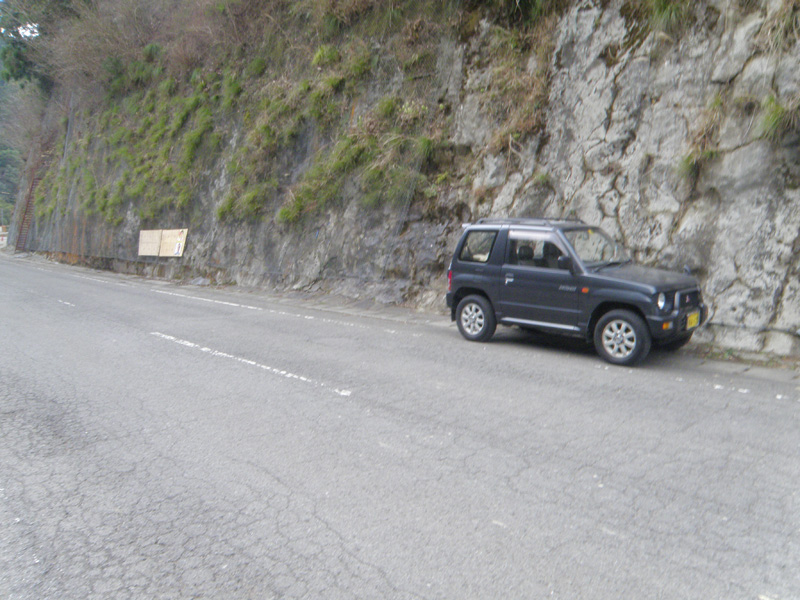 ものすごい急傾斜を下りて行き、ようやく車道に到着。 が、ここはどこだ?