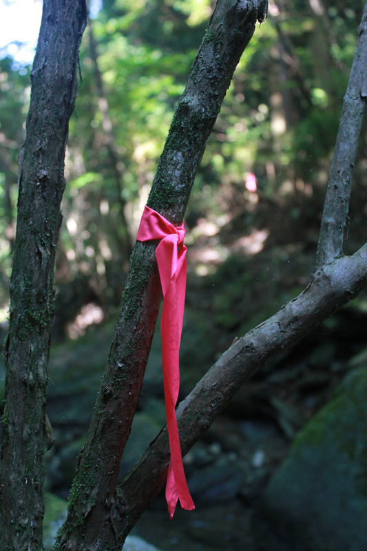少し進むと古い赤テープ発見。 これで合ってるっぽい。 よかった。