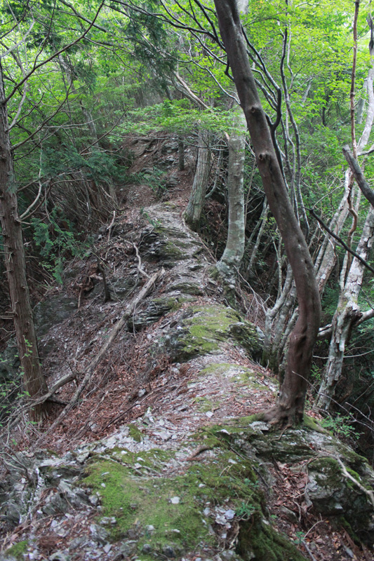 ここからはひたすら尾根を登っていく。 ほぼ一直線の道で、傾斜がきつくかなり辛い道になる。 ここは心肺のトレーニングがてら、一定の負荷をかけながらノンストップで歩くことを目標に進んでいく。