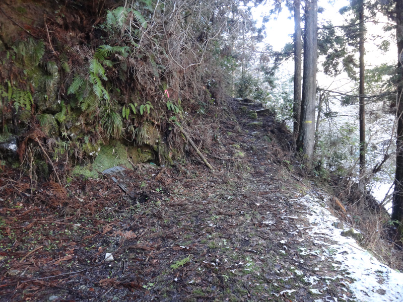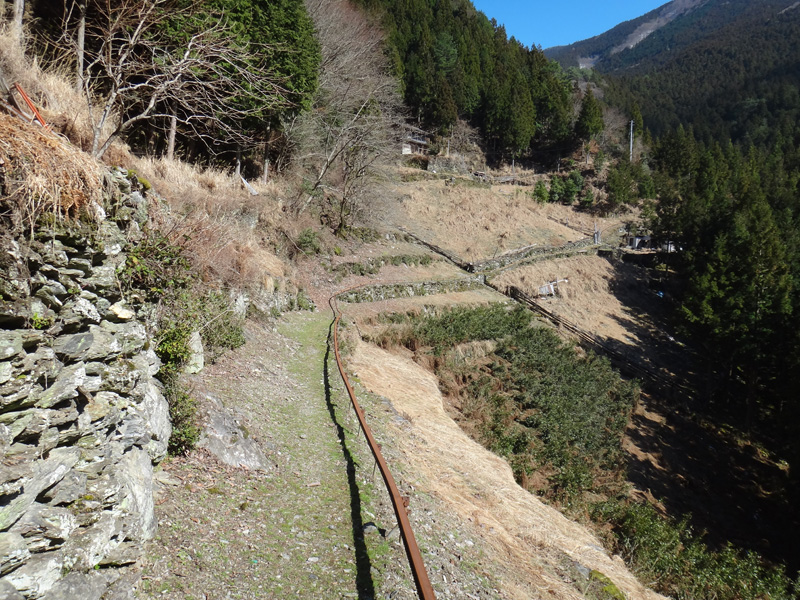樹林帯の中も、数十年前までは人が住んでいた様子がある。 既に廃墟すら残っていないが、明らかに土台だった土地や、石垣が今でも残されている。