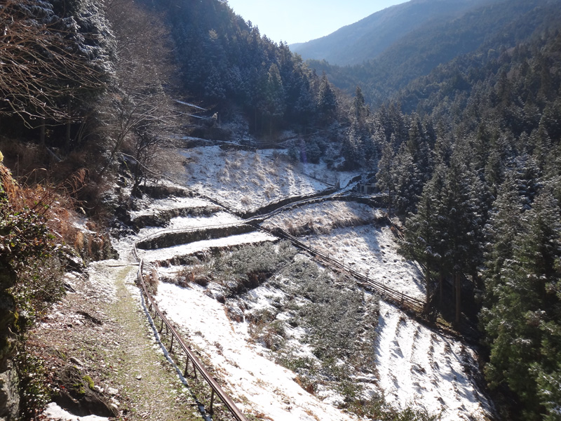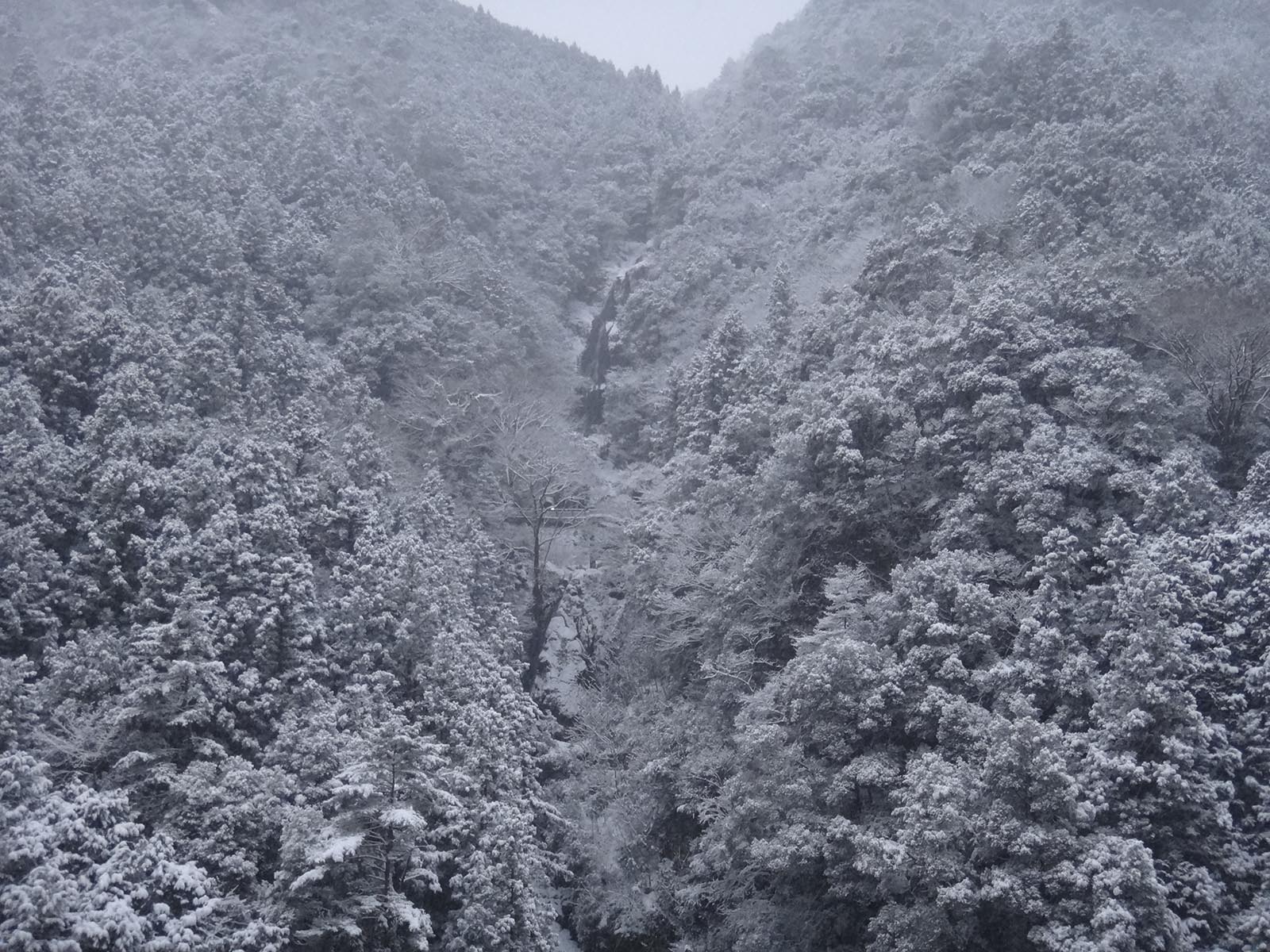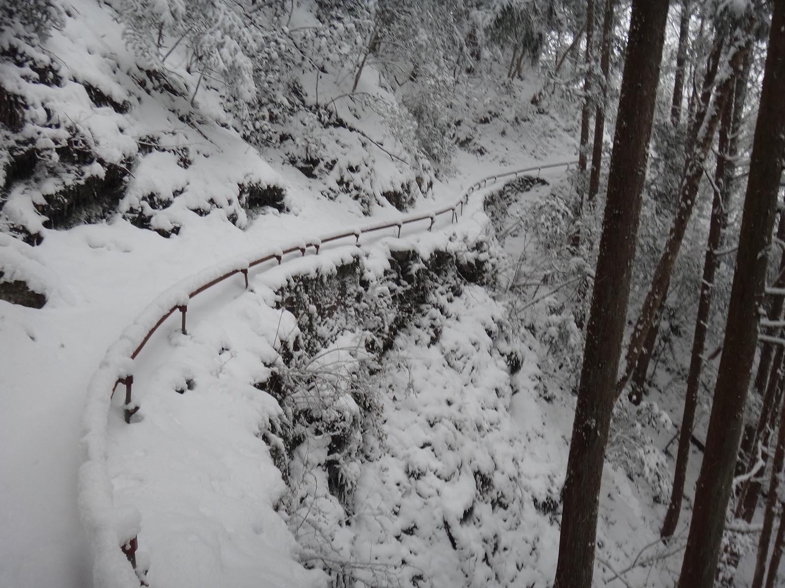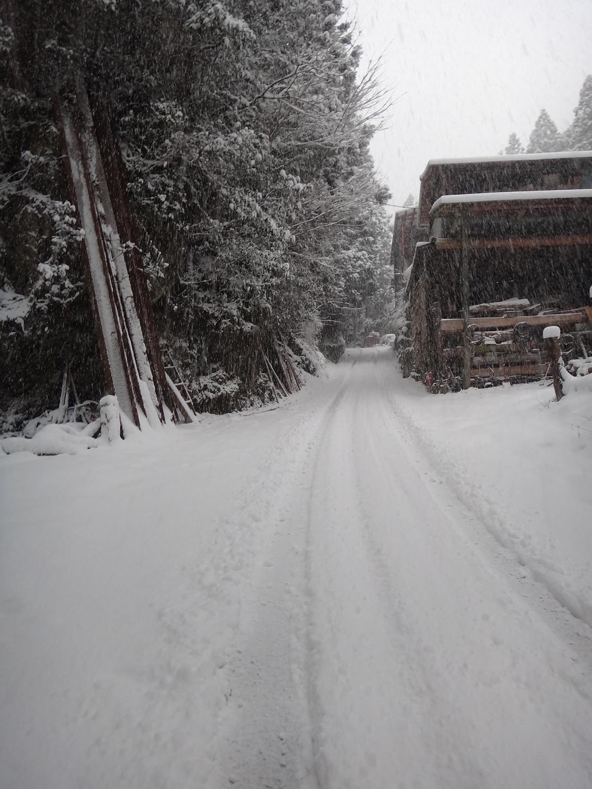 この辺りでこんなに雪景色になっているいのは初めてかも知れない。 真っ白な貞光駅を見て、国道438号線へ。 国道438号線自体は、けっこう雪が降る地帯なので、こちらは見慣れた景色だった。 真っ白な鳴滝を見て、どんどんと奥に進んでいく。 この当たりの雪は見慣れているとはいえ、一宇役場付近で、10~15cmくらいは積もっているのを見るのは年に1、2回くらいしかない。