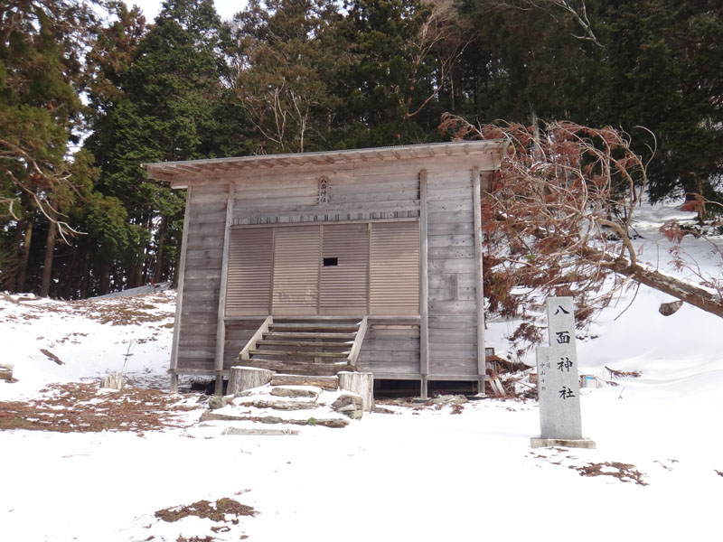 ここから八面神社までは、すぐに到着。 神社には先行者がいたので少し話をした。 もう山頂には行ってきたみたい。