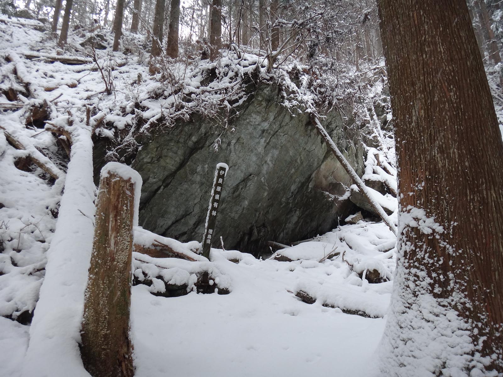登山道途中にある、民家の人が、登山口まで軽トラックで入っているのを見たことがあるが、おそらく11月の大雪で倒れたであろう木々が行く手を阻むヶ所があった。 登山口まで車で入るのは無理だね。