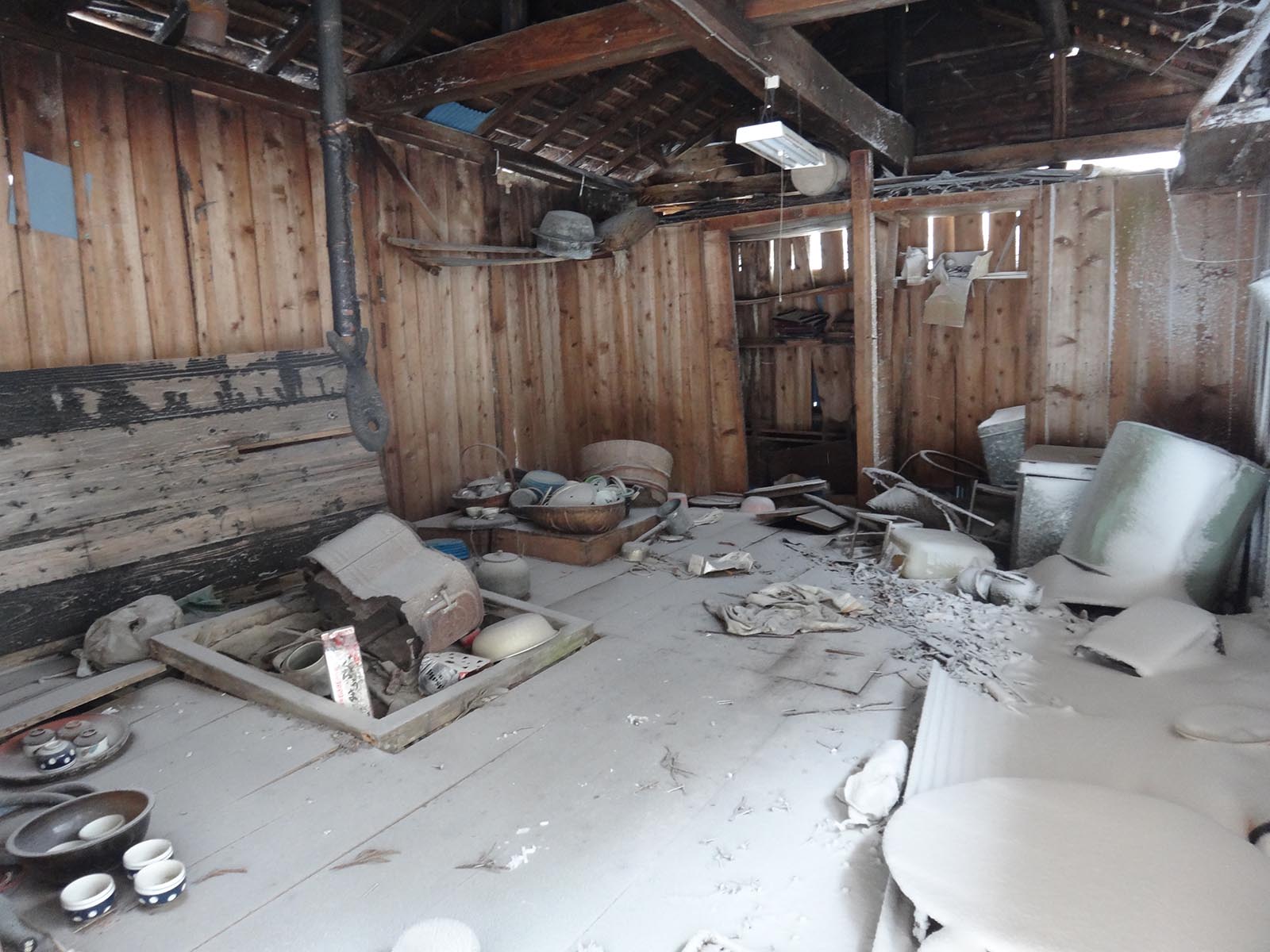 歩き始めて休憩していなかったので、ここでようやく休憩。 廃屋の中は雪も風もしのげるのでゆっくり休憩できる。 まだ時間が早いが、もうお昼にしようか。