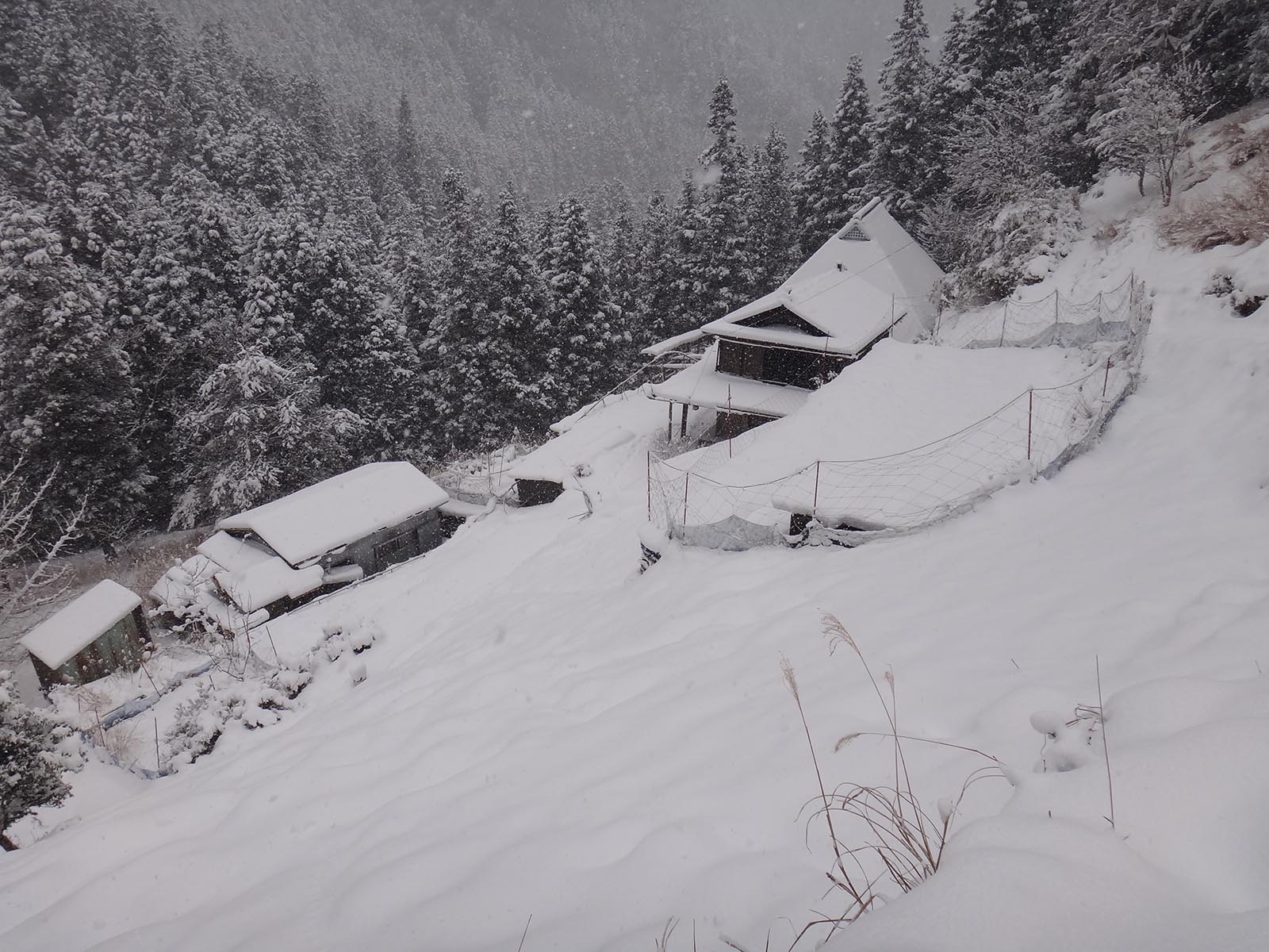 雪が降っていて景色は全然見えない…… すぐに廃屋まで戻ってくる。