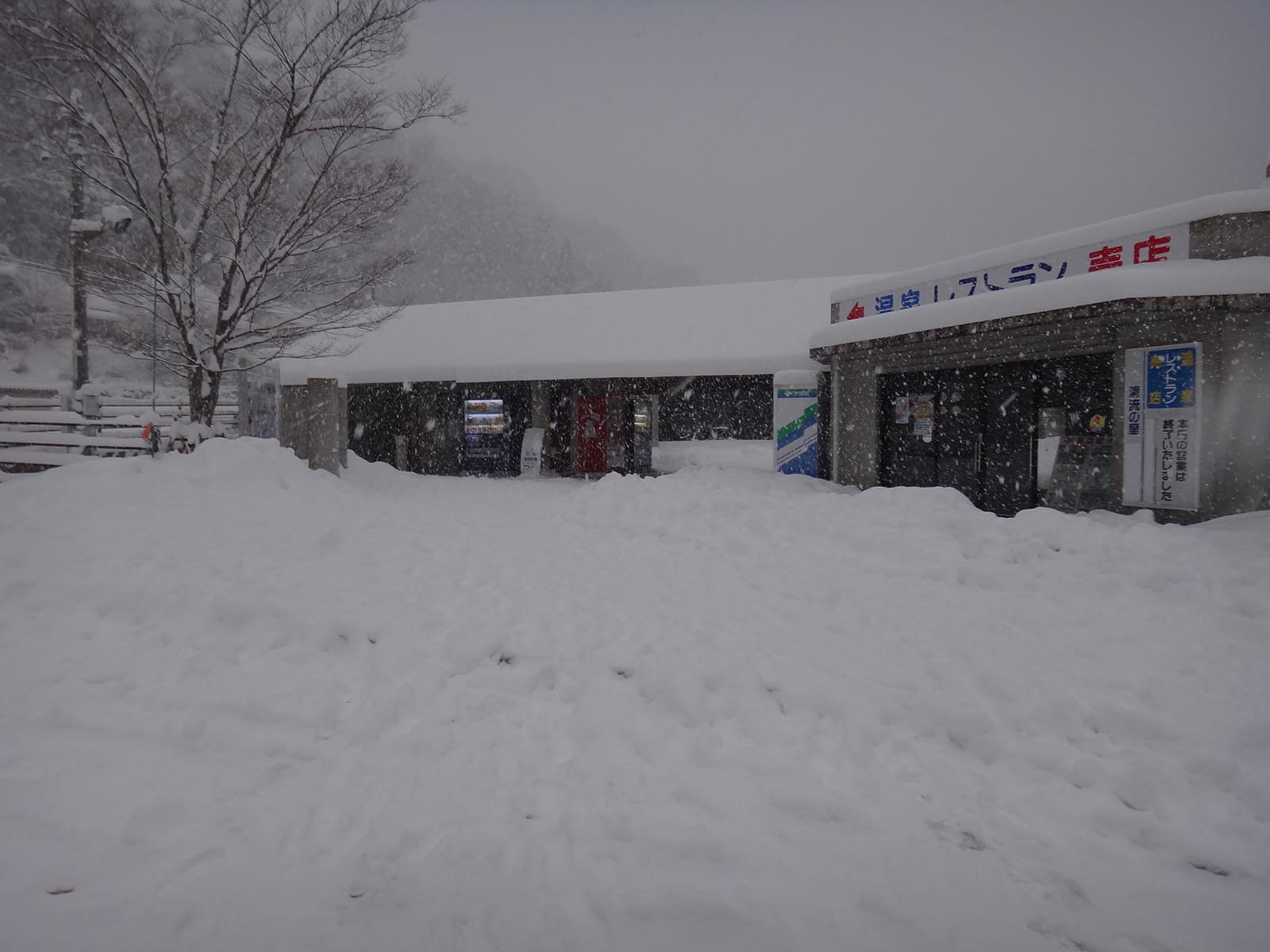 道の駅ことなみにある温泉設備などは、閉館していた。 従業員も来られないのかもしれない。 道の駅の駐車場には大量に雪が積もっていたので、家族連れが多く遊んでいた。